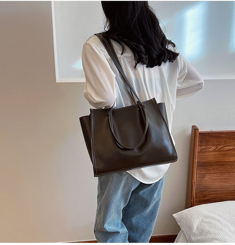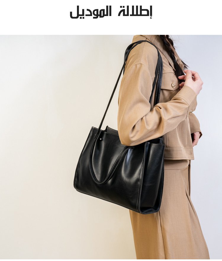 [أسبوع الموضة نفس النمط] حقيبة كتف بسيطة ذات سعة كبيرة من جلد البقر