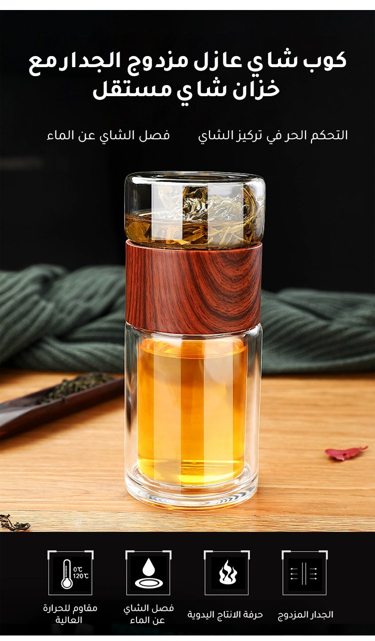 كوب شاي عازل مزدوج الجدار مع وظيفة فصل أوراق الشاي (شراء 1 والحصول على 1 مجانا)