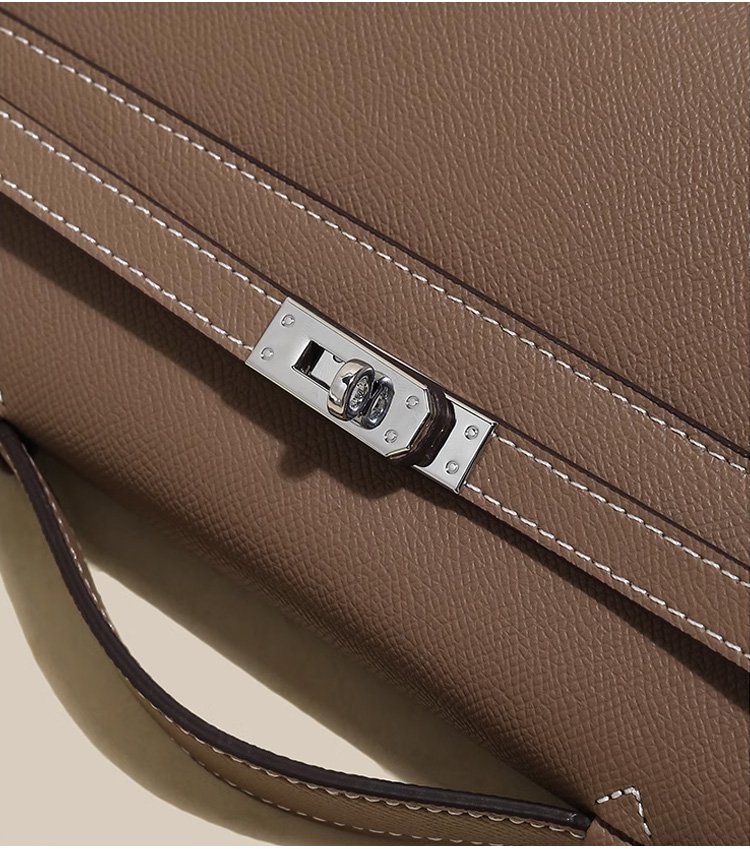 حقيبة يد نسائية عصرية أنيقة من الجلد الخشن الكلاسيكي من فرنسا