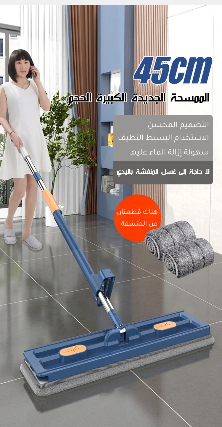 ممسحة مسطحة كبيرة الحجم، عصر الماء بضغط(إهداء قطعتين من المنشفة)